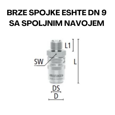 Brze spojke ESHTE DN 9 serije su visoko kvalitetne i izdržljive i predviđene su za rad na maksimalnim temperaturama. O-ring je napravljen od specijalne hitec gumene mešavine FKM koja je otporna na visoke temperature i predstavlja prevenciju od curenja na spoju.